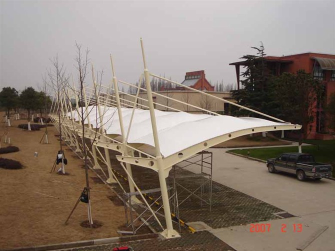 承接:車棚膜結構、房頂膜結構頂棚、 景觀張拉膜、看臺膜結構、污水池膜結構、充氣膜結構、溫室大棚、蔬菜塑料大棚等。
